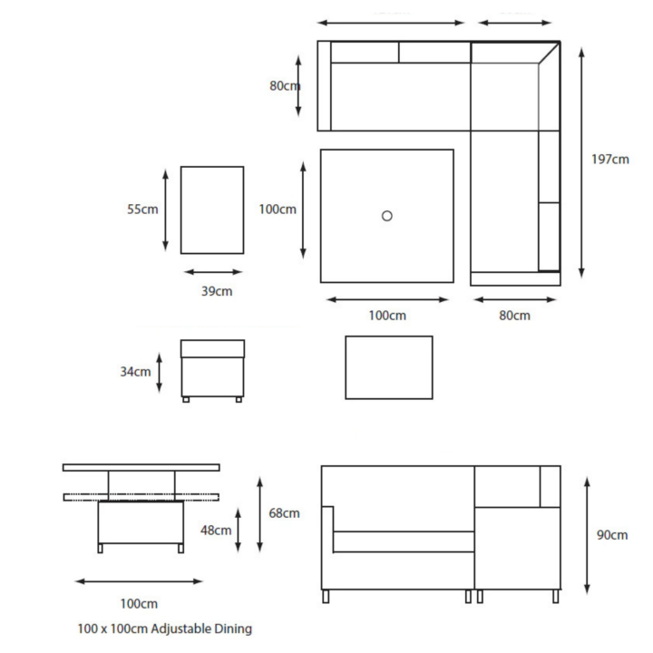 Corsica Compact Modular Dining Table With Adjustable Table