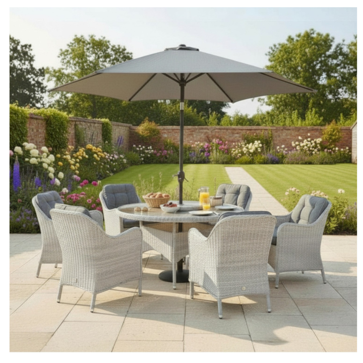 Cannes 6 Seat Dining Set with Lazy Susan & 3m Parasol |