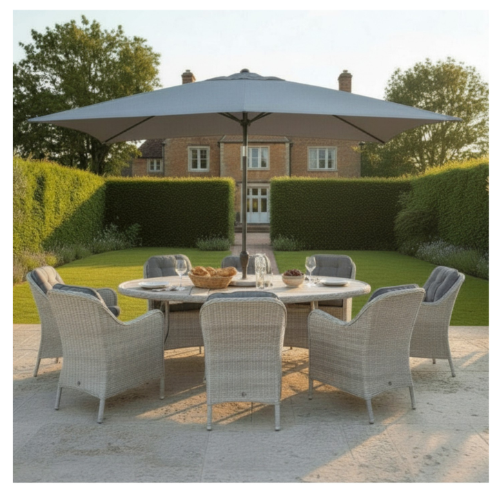 8 Seat dining Set With 3m x 2m Parasol and Lazy Susan |
